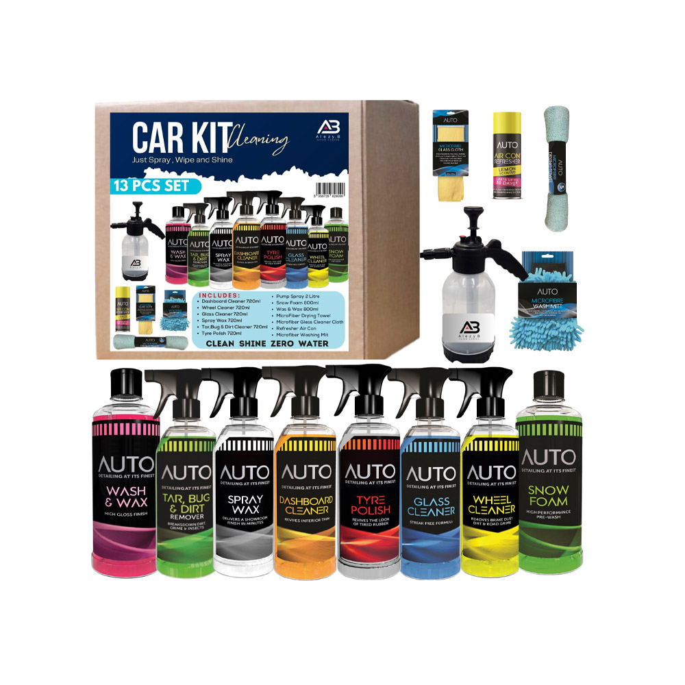 | Color | 11 Pcs Car Cleaning Kit – D1, 13 Pcs Car Cleaning Kit – D2, 2 Pcs Car Cleaning Kit – D3, 5 Pcs Car Cleaning Kit – D4, 720ml Tar, Bug & Dirt Remover, 720ml Bleeding Wheels, 720ml Wheel Cleaner, 720ml Dashboard Cleaner, 720ml Glass Cleaner, 720ml Tyre Polish, 720ml Leather Cleaner, 720ml Waterless Wash & Wax, 720ml Fabric & Upholstery Foaming, 720ml De Icer, 720ml Spray Wax, 800ml Screen Wash, 800ml Wash & Wax, 800ml Snow Foam, 3 Ltr Snow Foam, 3 Ltr Waterless Wash & Wax, 500ml Chrome Polish, 500ml Restorer Gel, 500ml Leather Cleaner, 500ml Bring It Balck, Wax Polish 500ml, Rain Repellent 500ml, Wet Look Gel 500ml, Washing Mitt, Yellow Microfibre Cloth, Blue Microfibre Polishing Cloth, Microfibre Drying Towel 5 Sq Foot, Polishing Pads, Spray Pump Bottle, Snow Foam Gun, Vacum Cleaner, 100ml Tropical Mist, 100ml Fresh Linen, 100ml Ocean Breeze, 100ml Cedar Wood, 200ml Air Con Lemon, 500ml lemon Car Air Freshner, 500ml Bubblegum Car Air Freshner, 500ml New Car Air Freshner, 400ml Carpet & upholstery, 500ml Gloss Tyre Shine Dressing, 500ml Exterior Tyre & Trim Cleaner, 500ml Exterior Matt Cleaner, 40pk – Leather Wipes, 40pk – Disinfectant cleaning wipes, 40pk – All-purpose cleaning wipes, 40pk – interior matt cleaning wipes, 40pk – interior gloss cleaning wipes, 40pk – Glass cleaning wipes |